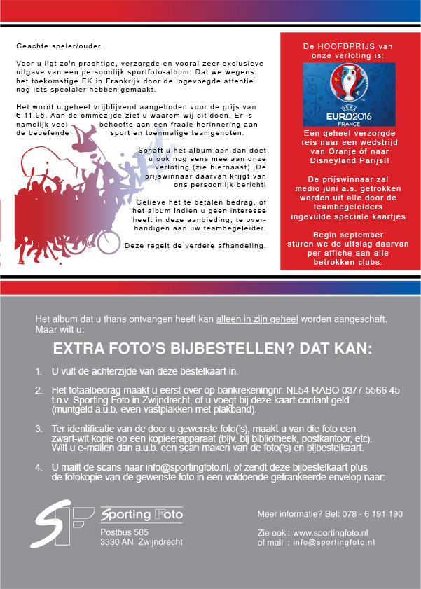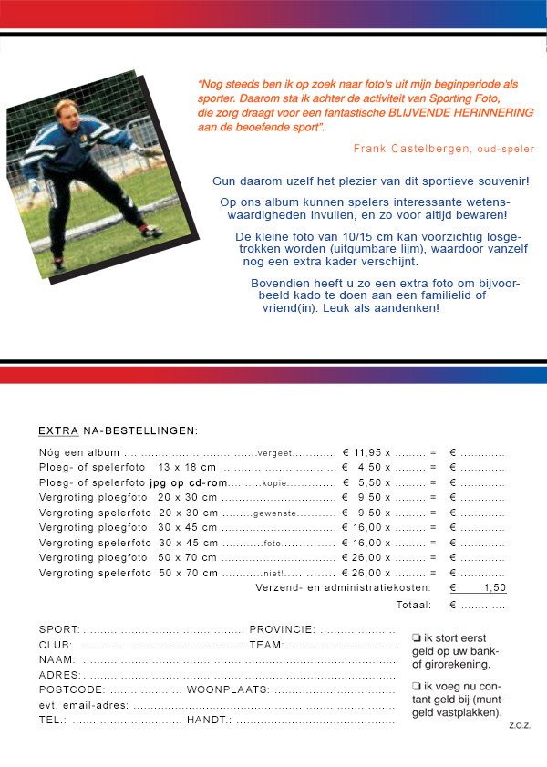 Voor een ploegfoto die u bijbestelt hoeft u geen kopie van de foto