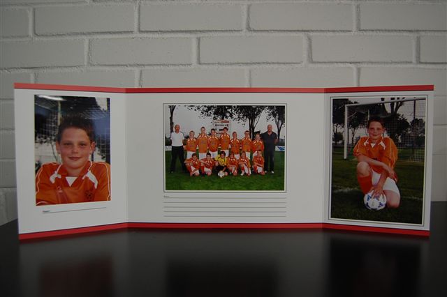 Sporting Foto levert geen losse foto's, maar foto's ingeplakt in een speciale passe-partout met een voorkant en een binnenkant. Wij noemen ons product daarom 'een album'. Verder doen we niet aan actie-fotografie, maar maken we portretten. Klik voor voorbeeldfoto's. De cover en achterkant van het album wordt om de twee jaar veranderd. U kunt de albums van de afgelopen jaren hier bekijken. Binnenin het album zitten de foto's. En er zijn daar ook speciale kaders als ruimte om een aantal interessante wetenswaardigheden in te vullen, zoals de namen van je teamgenoten!